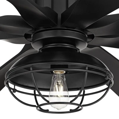 The Defender™ large ceiling fan from Possini Euro Design® provides light and air movement for your decor. It comes in a matte black finish motor and eight matte black finish ABS blades with a 60-inch blade span. For added functionality, a caged light kit with an energy-efficient LED bulb in a vintage Edison style is included. A handheld remote control is included for operation.