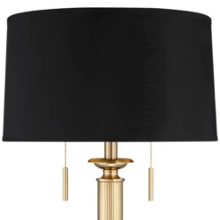 Possini Euro Design Wynne Traditional Table Lamp 30″ Tall Warm Gold With USB Charging Port Black Drum Shade For Bedroom Living Room Bedside Nightstand