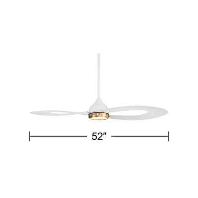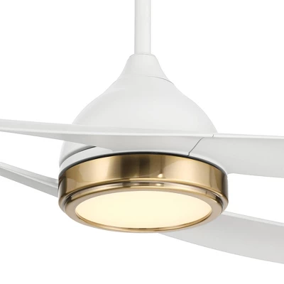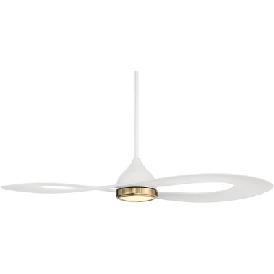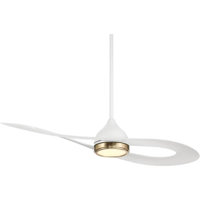 Gentle and graceful curves are here to impress with the Obi collection of contemporary modern ceiling fans from the Possini Euro Design® brand. Two molded ABS blades in matte white finish swoop around the motor in wide curves with open spaces to create the comfortable sensation of air circulation. The matching matte white finish motor features a soft brass finish accent for a splash of metallic color. The Obi collection is completed by an integrated CCT LED module, and all functions can be operated with the included hand-held remote control. The Obi collection is damp location rated for both indoor and covered outdoor use.