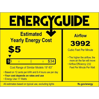 - 52″ blade span. 17 degree blade pitch. DCS-22 motor. Includes six-speed hand-held remote control.