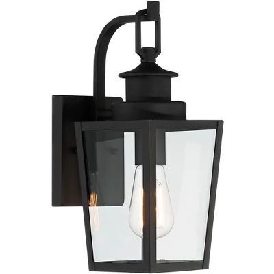 A tapered rectangular framework lends itself to modernist appeal with this intriguing modern outdoor wall light. A black finish and clear glass create a simplified and refined look. This updated lantern design is wet rated for locations exposed to rain and snow and looks great with a vintage style bulb (not included).