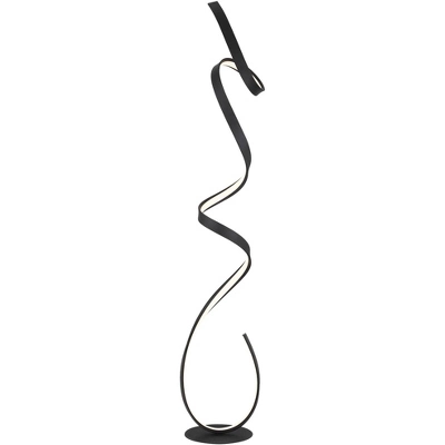 This contemporary floor lamp is the perfect conversation starter for your living, bedroom or office space. Energy efficient LEDs are arranged in a flowing ribbon of light from base to top. Metal construction with matte black finish and white acrylic light cover. Modern sophistication from the Possini Euro collection.