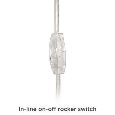 - Each lamp uses one maximum 60 watt standard-medium base bulb (not included). In-line on-off rocker switch on the cord. 8′ clear silver cord.