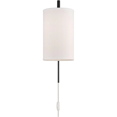 Easy to install, these plug-in wall lamps add instant style and light to any setting. The set features a streamlined modern profile with white fabric drum shades. The wall plate and top arm come in a black metal finish. An in-line on-off rocker switch on the cord gives you easy lighting control.