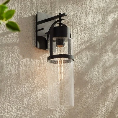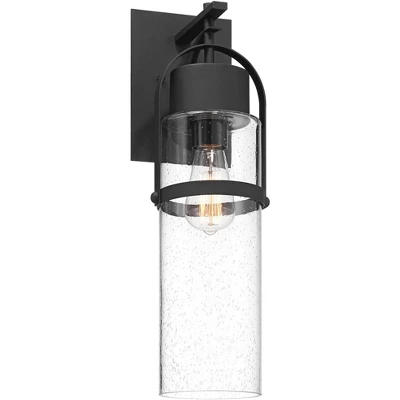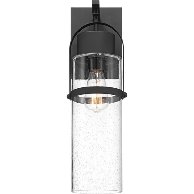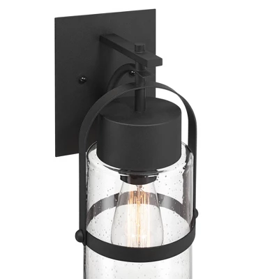 Displaying industrial inspired elements in a contemporary modern package, the Caramela outdoor wall light from the Possini Euro Design® brand is ready to upscale your home’s curb appeal. Stylish black finish serves as an understated backdrop with minimalism visual interest. The clear seeded glass shade clearly displays the singular bulb, adding a naturalistic charm. Wet location rated, this wall light is perfect for all of your home’s exterior spaces.