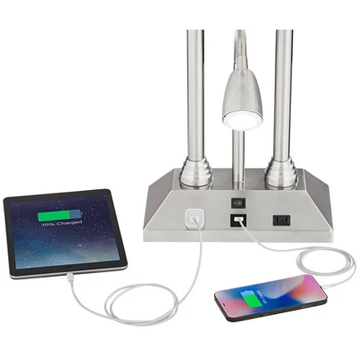 Possini Euro Design Dexter Modern Table Lamp 26″ High Brushed Nickel With USB And AC Power Outlet In Base LED Reading Light White Shade For Home Desk