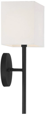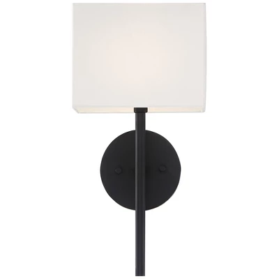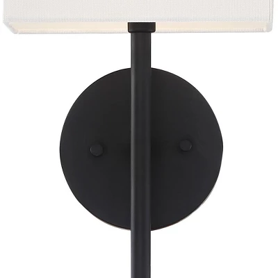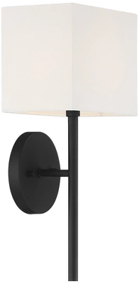 By Possini Euro Design®, this set of two contemporary black wall sconces is a sophisticated choice for a living area or hallway. It shows off a classic troch profile updated for modern living with clean lines and a rectangular shade complementing a round wall plate. A sleek black finish adds dramatic flair while a linen shade ensures soft, appealing illumination.