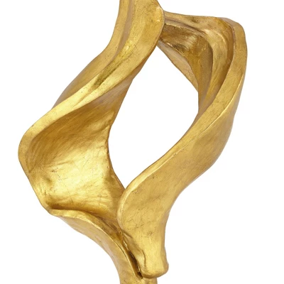 - Gold leaf finish abstract shape lamp base. Resin construction. Round real marble base in a white color.