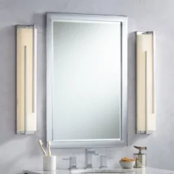 Get energy-efficient illumination and modern style with this LED bathroom wall light. This fixture comes with a white glass shade that creates lovely diffused lighting for daily grooming and other tasks. A sleek thin profile and shiny chrome finish blend seamlessly together to form a clean-cut contemporary design. Can be installed vertically or horizontally.
