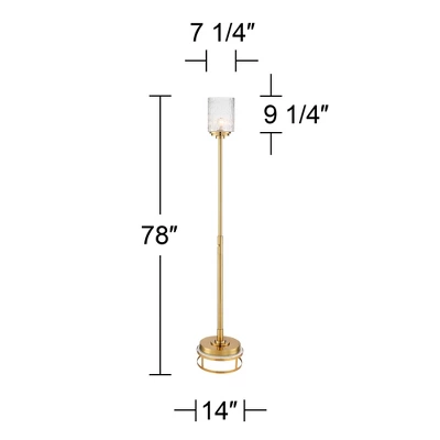 From the Possini Euro Design brand, this torchiere floor lamp with a gold and marble riser offers both style and function. The slender metal pole profile comes in an antique brass finish and is topped by a stone pattern crystal glass shade. An on-off knob on the pole gives you easy lighting control. This wonderful luxe design is sure to brighten a sitting area or room corner.