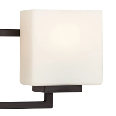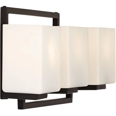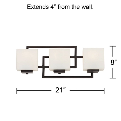 This three-light bathroom wall light features sleek lines for a contemporary appeal. The rectangular shades of opal glass are positioned to complement the geometric form of this design. A great modern update your for stylish bath. This is an ADA compliant bath light.