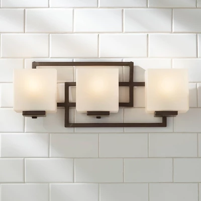 - Three-light bath light from the Lighting on the Square Collection by Possini Euro Design®.