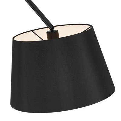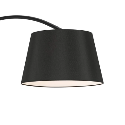 Perfect for those who appreciate form, function, and forward-thinking design, the Luka arc floor Lamp transforms your space with its striking presence and inviting illumination. From the Possini Euro Design lighting brand, the lamp has a long arc arm and base in a black finish along with a black marble base. A black linen lamp shade with a tapered drum profile directs light downwards creating a bold statement piece. Lower hanging shade is ideal for reading and tasks.