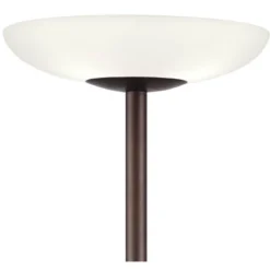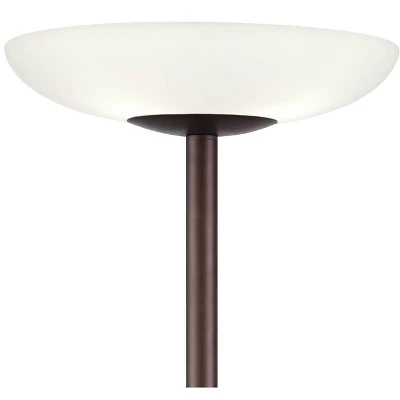 The Meridian Light Blaster™ Torchiere from Possini Euro Design uses four powerful LED bulbs to produce a light output comparable to 300 watts of incandescent. The generous light output of this floor lamp is great for general ambient light as well as reading, crafts and other tasks. The energy-efficient torchiere comes in a sleek oil-rubbed bronze finish and a multi-level switch for more lighting control. A black finish round riser is included to give the lamp extra height and presence in a room.