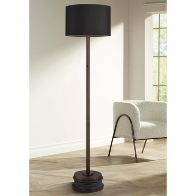 Bring bright light to your decor with this tall floor lamp design from the Possini Euro Design brand. The Meridian features a Light Blaster arrangement of LED bulbs that provides a light output comparable to that of a 300 watt incandescent source, but with an 85-percent energy savings over incandescent bulbs. It comes in a sleek oil rubbed bronze finish. Up top is a black fabric drum shade that sits over a large glass diffuser that directs light upwards for general room illumination. Comes with a black lamp riser you can place under the lamp base for added height and style.