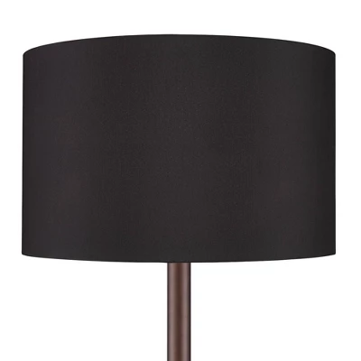 - Black fabric drum shade. White glass inner diffuser directs light towards the ceiling for general room illumination. 8-foot long cord.