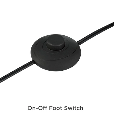 - Standard medium base socket rated up to 100 watts (bulb not included). 8′ black cord. On/off step switch located 33″ from base of lamp.