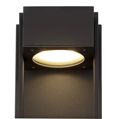 Get a cutting-edge modern design with this outdoor wall light. It comes in a textured black finish over a straight-edged steel frame, resulting in a handsome contemporary look. An energy-efficient LED module with a round crystal diffuser is built directly into the frame. This fixture is designed for vertical installation only.