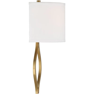 A visually appealing silhouette pads the modern creds of this contemporary single-light wall sconce. Simple and yet elegant, this sconce refines a classic living space with sophisticated vibes. A warm antiqued brass finish coats its open, decorative base, as a half-moon shaped linen shade adds a perfect complement. For vertical installation only.