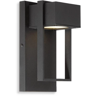 Get a cutting-edge modern design with this set of two outdoor wall lights. It comes in a textured black finish over a straight-edged steel frame, resulting in a handsome contemporary look. An energy-efficient LED module with a round crystal diffuser is built directly into the frame. This fixture is designed for vertical installation only.