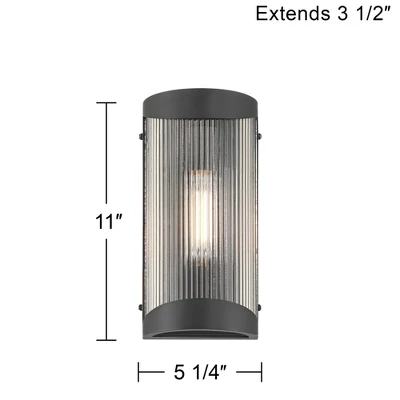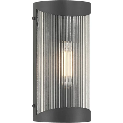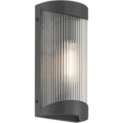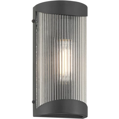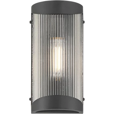 Versatile and modern, the August outdoor wall light from the Possini Euro Design® brand is a great choice to update your home’s exterior wall spaces. This minimalist design features a classy textured black finish and metal construction with an enclosed bulb, allowing for direct exposure to rain. Clear ribbed glass adds some visual texture, slightly filtering illumination for a soft glow.