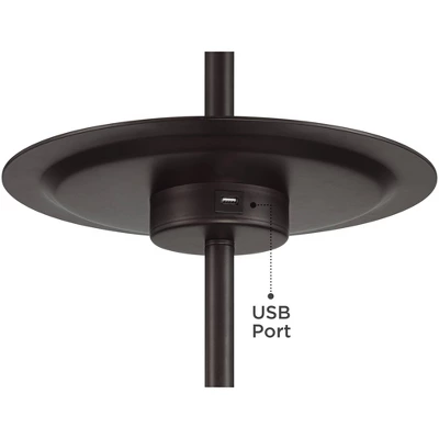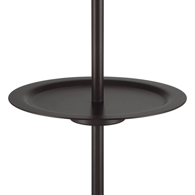 From the Possini Euro Design brand, this floor lamp artfully combines style and function. It has a classic stick profile for sleek style next to reading chairs and sofas. For function, it features a handy tray table on the pole along with a USB Type-A charge port. Use the USB port to keep phones and other devices charged up and close at hand. Perfect for dorm or bedside.