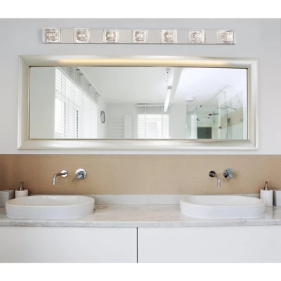 - Large bath bar light. Modern, contemporary seven-light bathroom light from the Possini Euro Design brand of lighting.