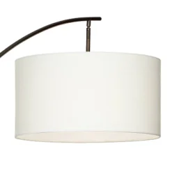 Possini Euro Design Raymond Modern Arc Floor Lamp 69″ Tall Bronze Adjustable Boom Arm Off White Linen Drum Shade For Living Room Reading Bedroom Home