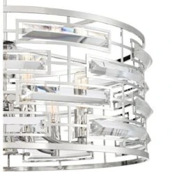 Possini Euro Design Smart Polished Nickel Chandelier 20″ Wide Modern Drum Clear Crystal 6-Light Fixture For Dining Room House Foyer Kitchen Island