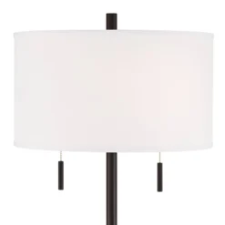 Possini Euro Design Traverse Modern Table Lamps 29″ Tall Set Of 2 With USB Charging Port Gooseneck LED Bronze Oatmeal Shade For Bedroom Living Room