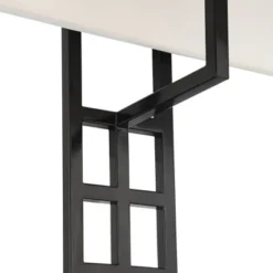 Possini Euro Design Ventano Modern Wall Lamps Set Of 2 Black Plug-In 16″ Fixture White Linen Fabric Shades For Bedroom Mirror